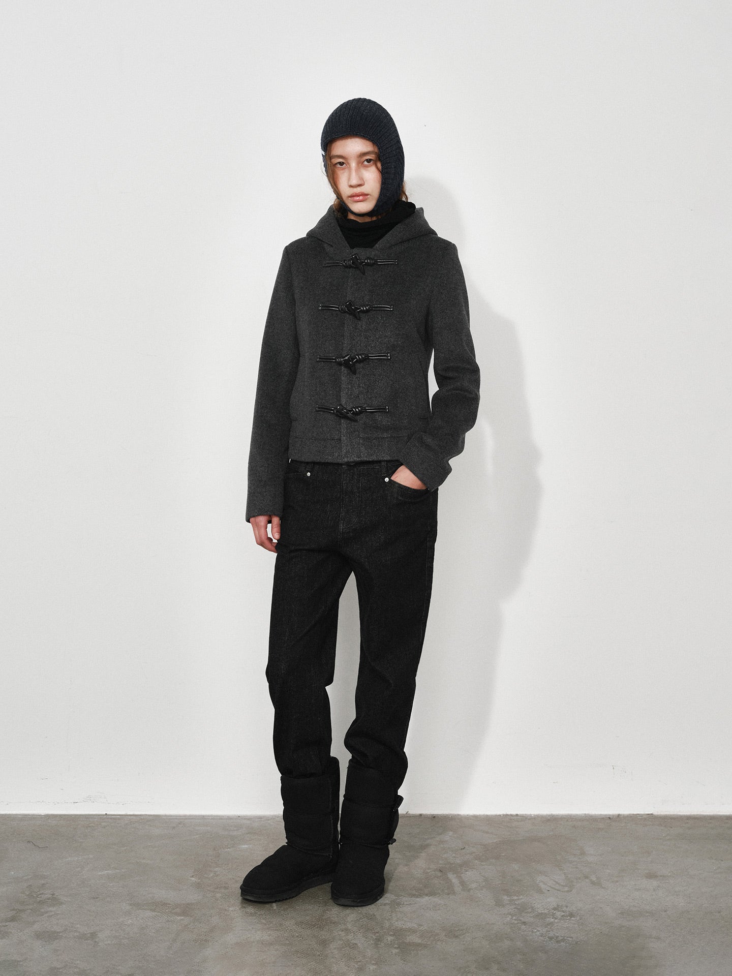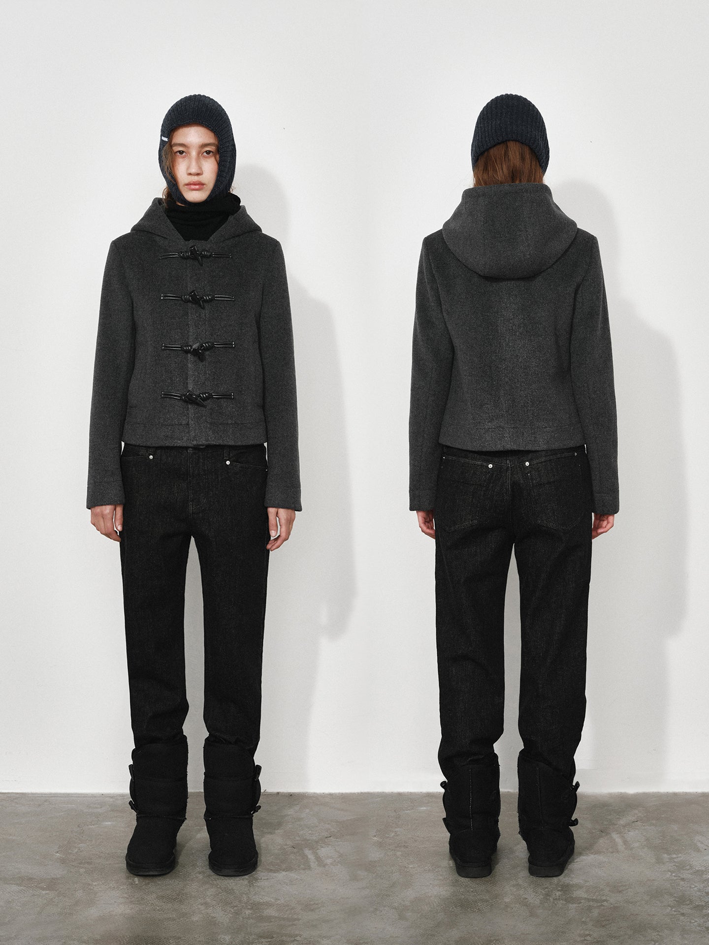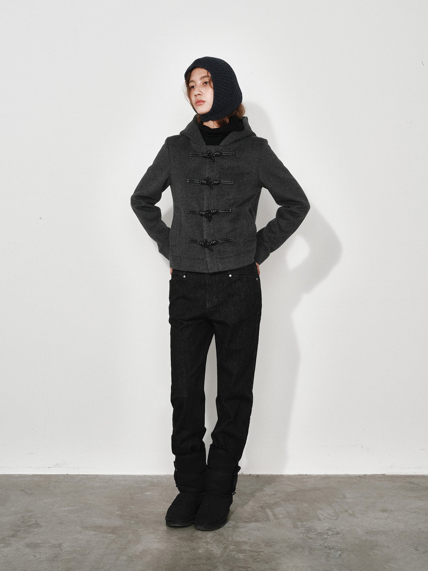 Hooded Toggle-button Slim-fit Short Wool Coat