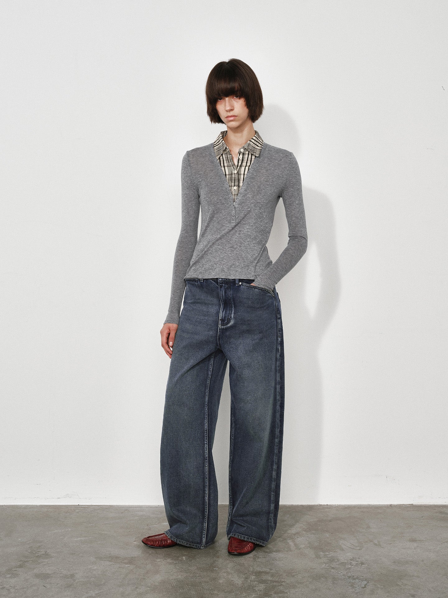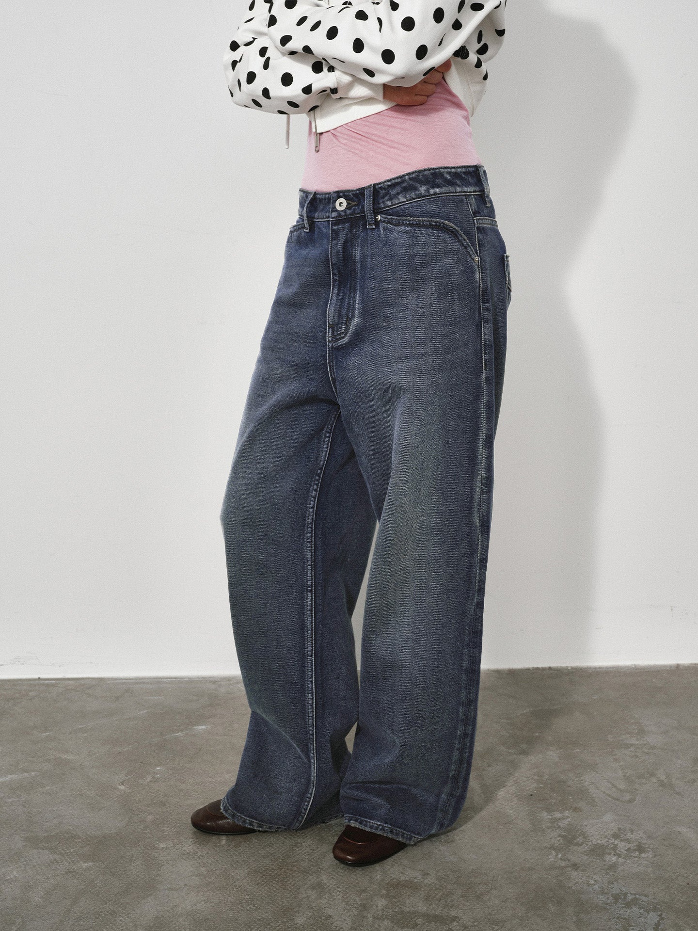Wide, Straight-Leg Non-Stretch DenimJeans